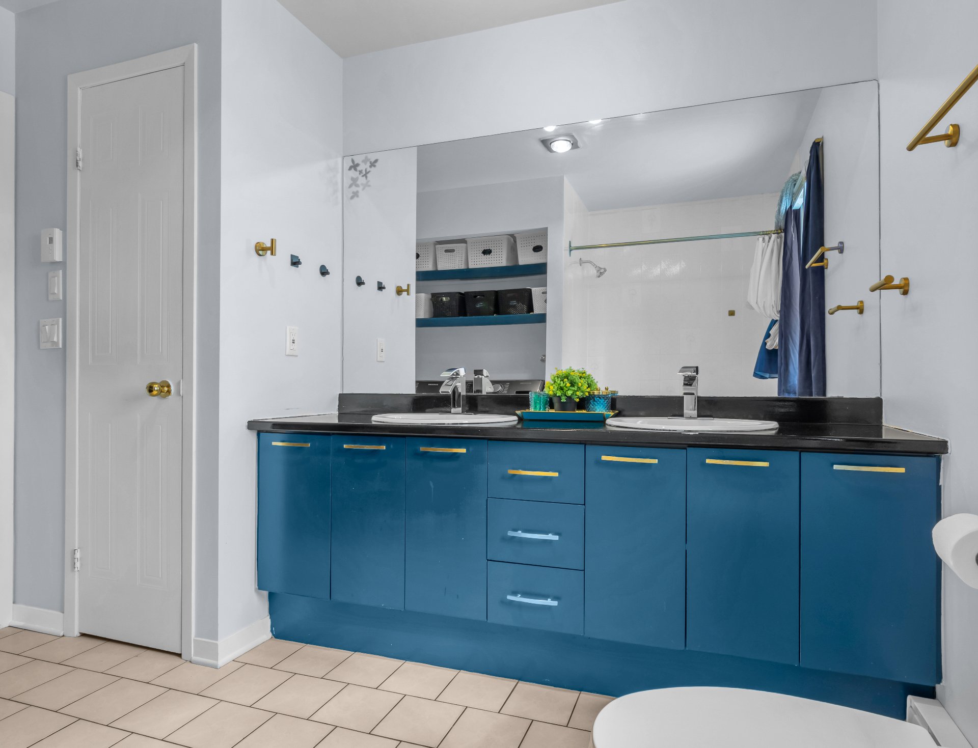 La salle de bain au RDC avec 2 lavabos pour éviter les encombrements les matins pour aller a l'école.